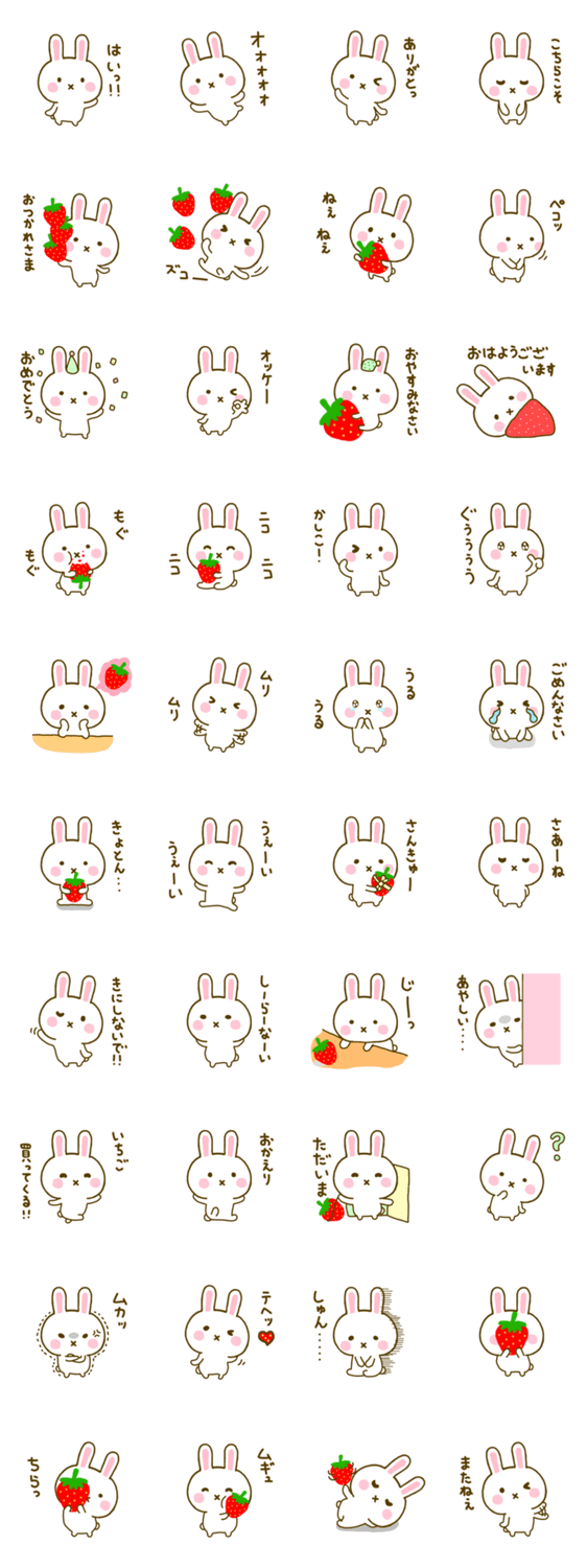 いちごが大好きすぎる、うさぎのうさちごかわいいシリーズです♪Naoyのスタンプ♪