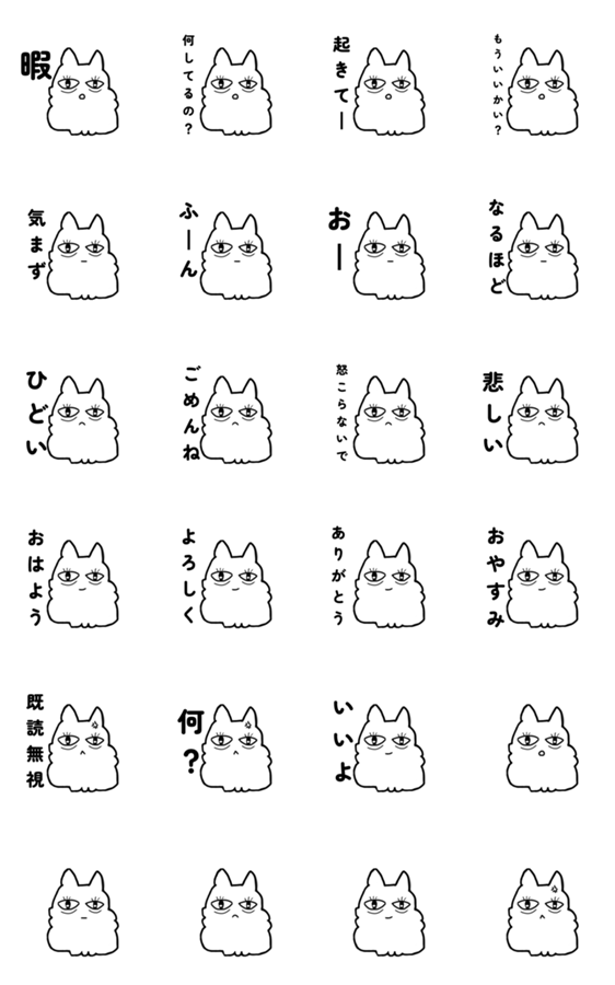 白ネコのあいうえお・・・ってるスタンプ