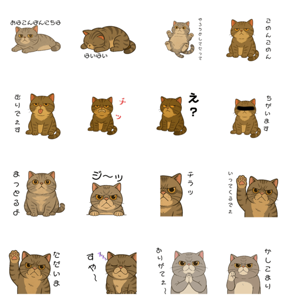 ブサかわいい、エキゾチックショートヘアをイラスト化。日常系会話をスタンプにしました。