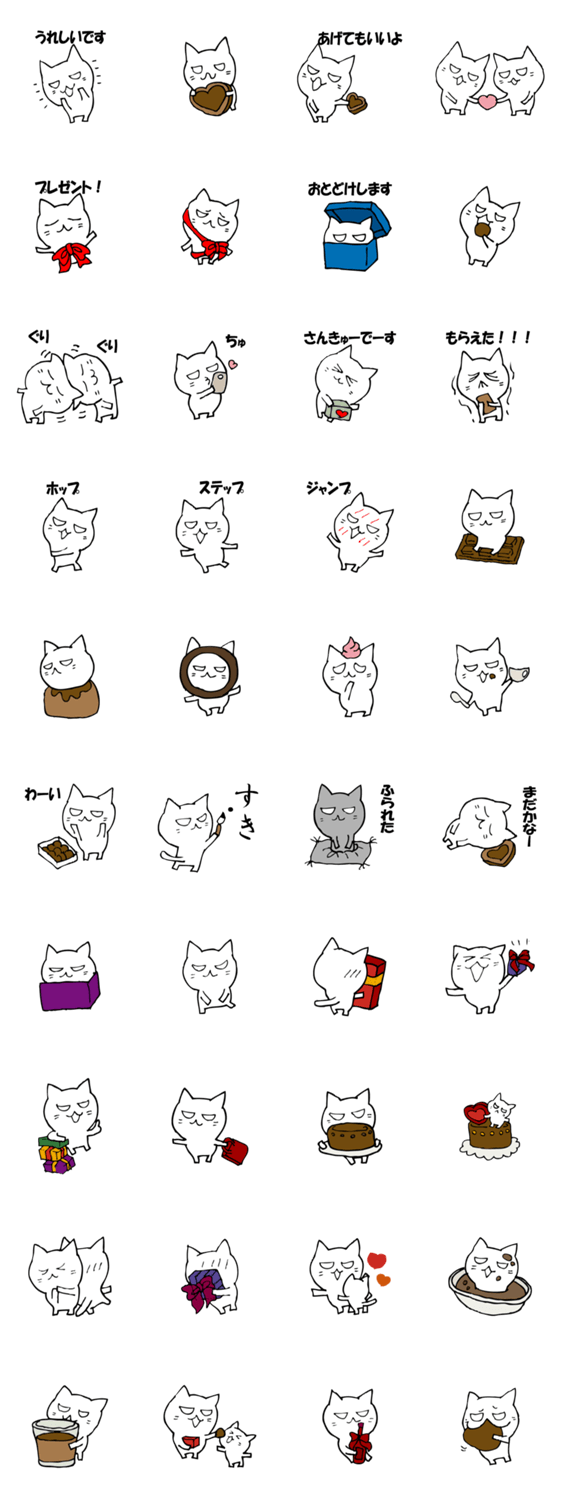 白ネコのあいうえお・・・ってるスタンプ