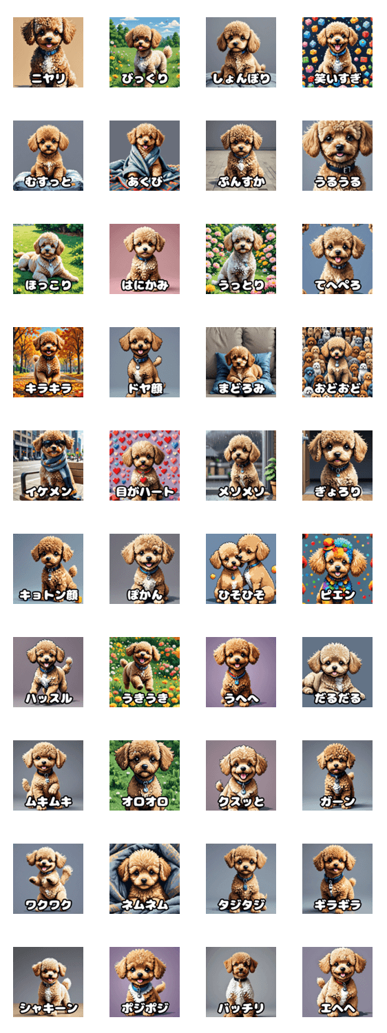 トイプードルが40の多彩な表情であなたのトークをもっと楽しく!毎日の気持ちをわんこで表現しよう。