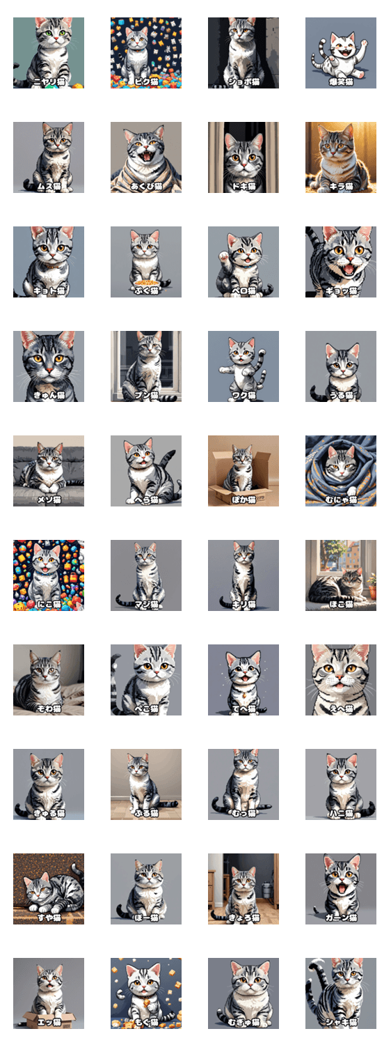 40表情アメリカンショートヘアねこ -LINEスタンプマニア