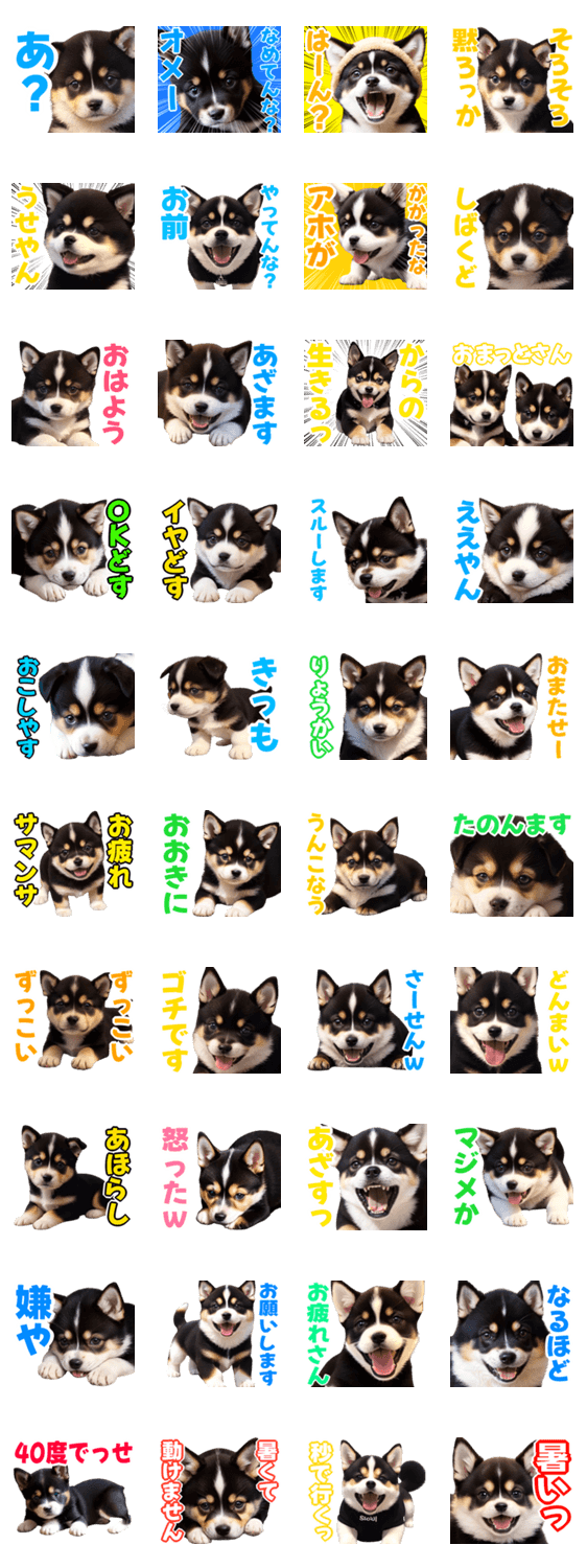 リアルで可愛い柴犬が面白くかわいく煽ってくれるおふざけスタンプです☆ミーム/犬/黒色/家族/ともだち/連絡/シュール/ネタ/ペット/面白い/AI/かわいい/関西弁/毒舌/動物