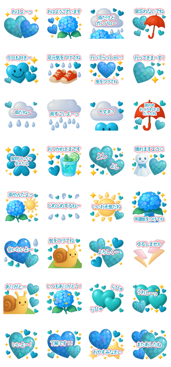 梅雨初夏のぷっくりハート❤️優しさ気遣い -LINEスタンプマニア
