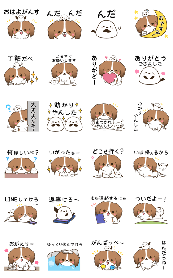 東北弁・岩手弁&盛岡弁を話す犬と鳥 コーイケルホンディエとシマエナガのかわいいスタンプ!北海道・青森・秋田・福島・宮城・山形の方にも 方言 挨拶 家族