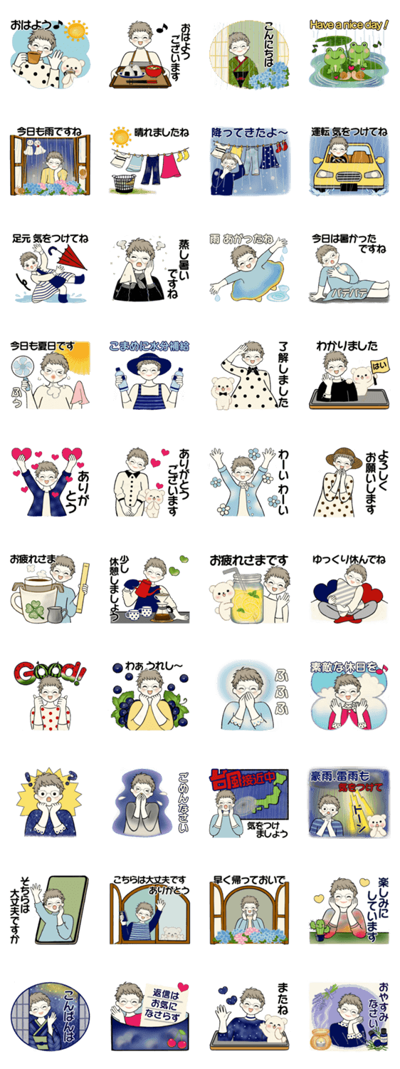 梅雨から初夏にかけて天候の不安定な時期に便利な日常スタンプです。災害時にも思いやりの言葉を添えて。過去作品の改訂版です。 日常/挨拶/梅雨/豪雨/台風/雷/初夏/敬語