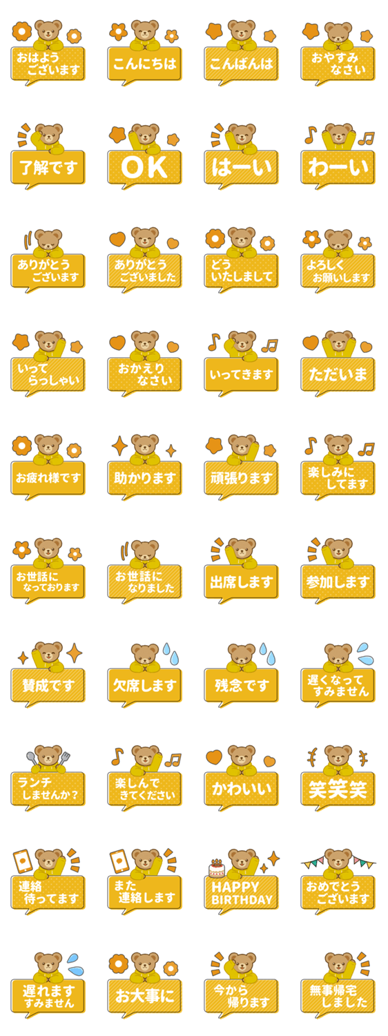 推し色テディベアのふきだしスタンプ/黄 -LINEスタンプマニア