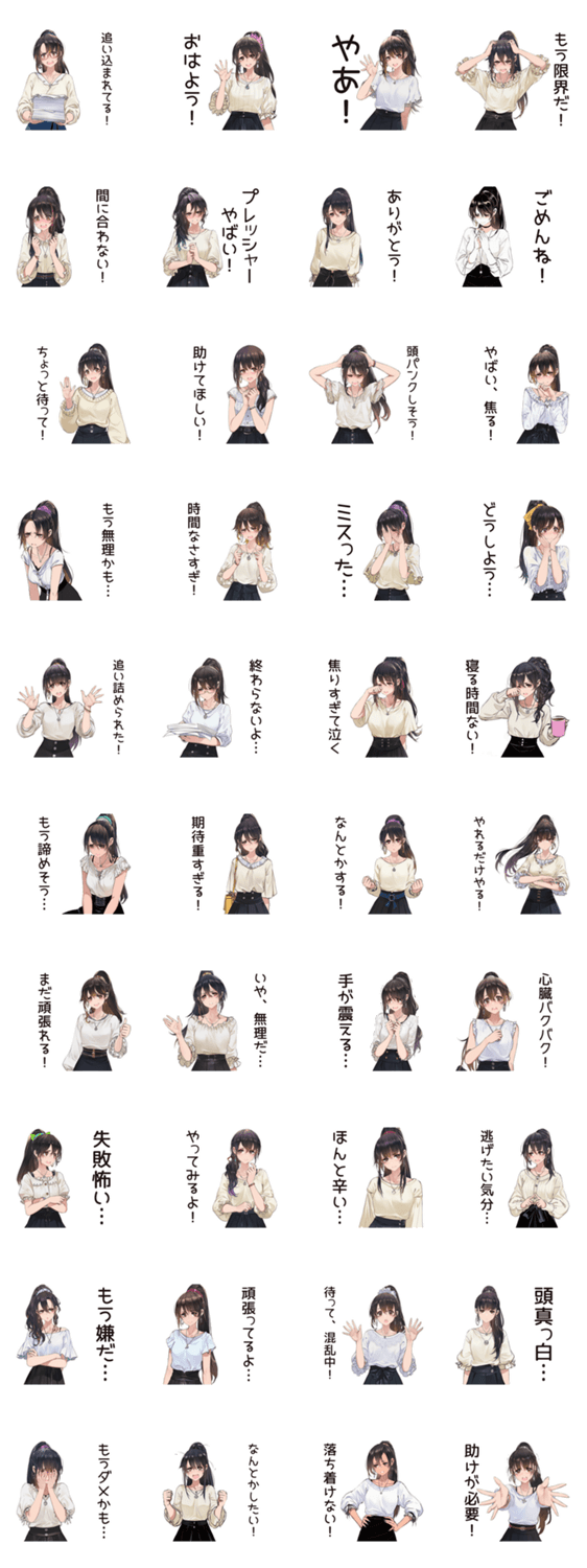 追い込まれた女性にぴったり!プレッシャーやストレスを伝えるスタンプ。仕事/締め切り/感情/不安/日常/女子/イラスト
