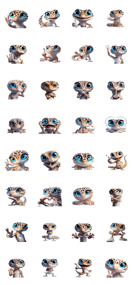 | スタンプ説明 | "かわいいヤモリキャラ、癒し系、面白い返事、LINEスタンプに最適、 |