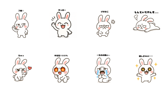 「喜怒哀楽ばっちり!白うさぎの一言スタンプで、気持ちがスッと伝わる♪日常会話に大活躍!」