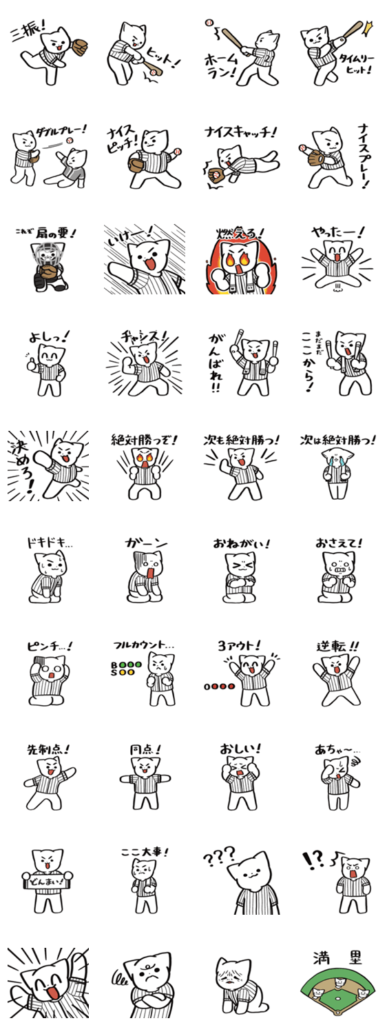 野球ねこ応援団・白黒縦縞チームVer. -LINEスタンプマニア