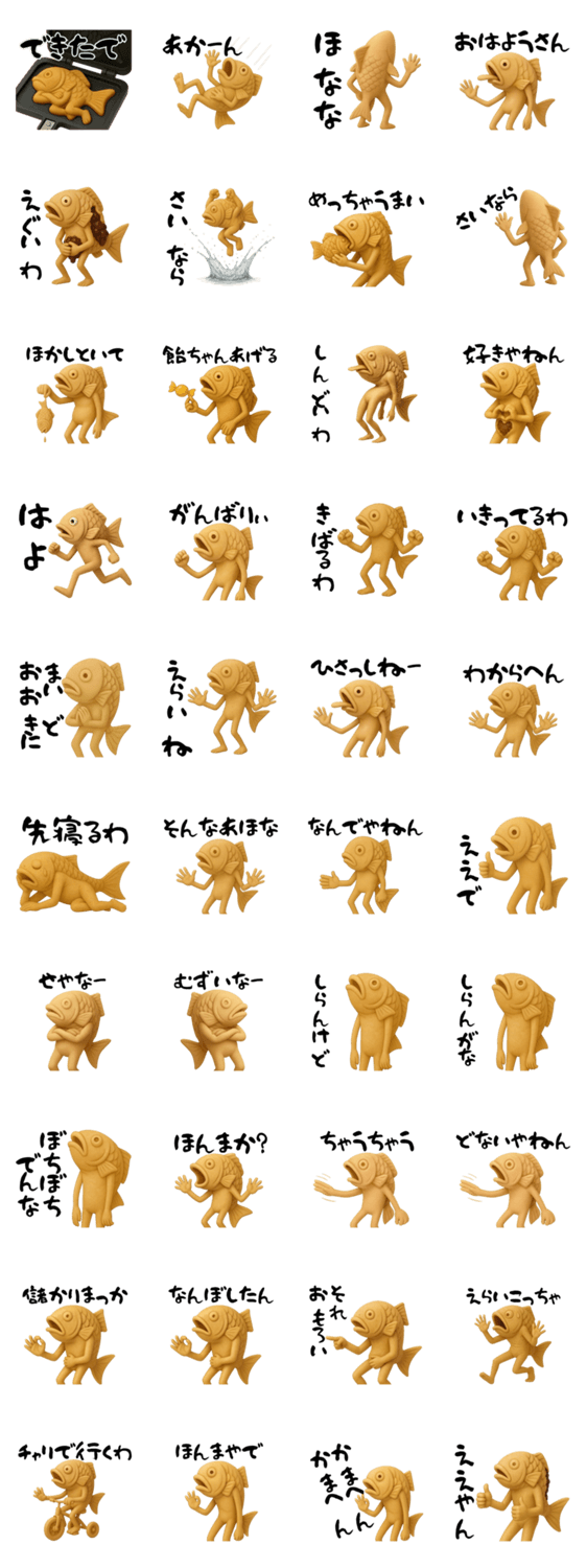 スタンプ説明 関西弁の鯛焼きくんでコミュニケーションをどうぞ!