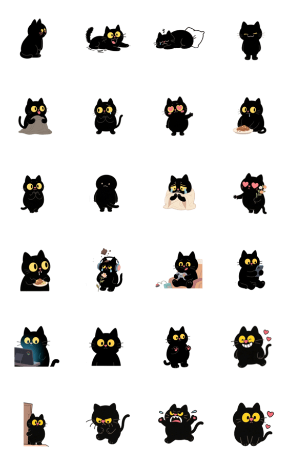 スタンプ説明 くろくて ちいさくて かわいいネコ