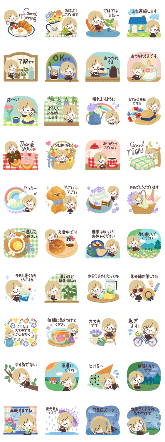 初夏~梅雨の気づかい言葉、お花&スイーツいっぱいお仕事中にも使える敬語スタンプ♪毎日、年中ずっーと使えます♪甘さ控えめ大人女子.丁寧.ママ友.挨拶.おしゃれカフェ