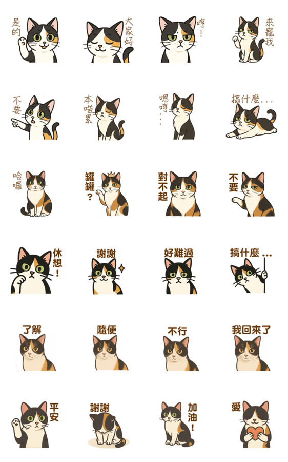 | スタンプ説明 | わがままだけど、誰よりキュート。三毛の姫は常に世界の中心 |