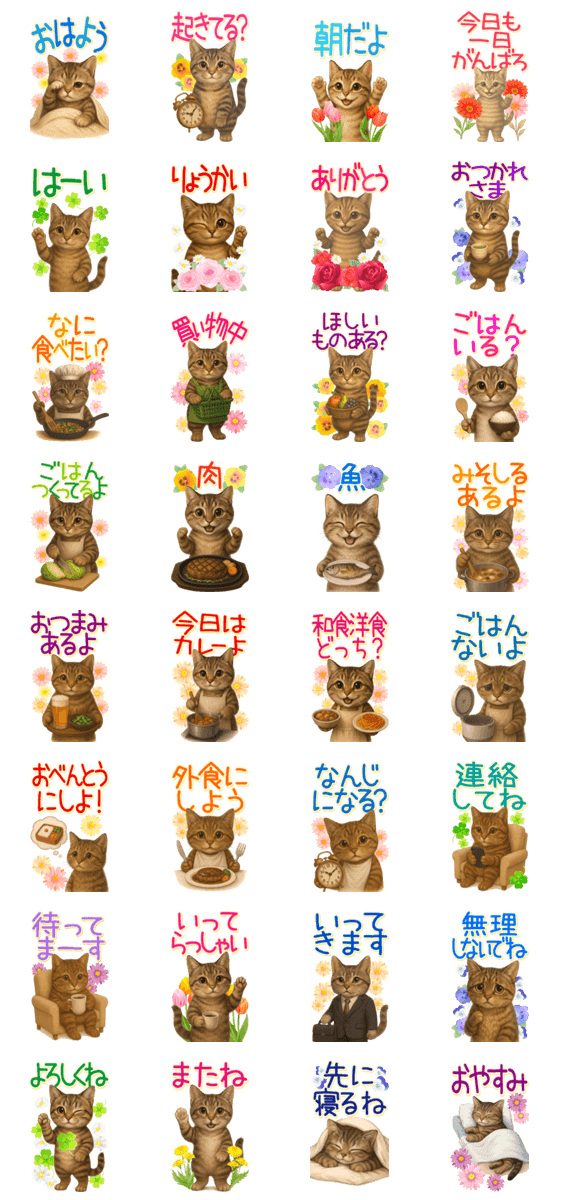 家族との連絡やよく使う日常言葉を集めました!猫とお花がとても可愛い!見やすいでか文字で使いやすさ満点です(新生活/単身赴任/主婦/カップル/夫婦/家事/大人可愛い) ※このスタンプはトークルームで大きく表示されるBIGスタンプです。