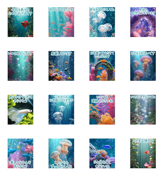 いつもお世話になっている方々にありがとうの感謝やお疲れ様の癒し・労いをお届けします♪美しい海や水族館の世界、優雅に泳ぐ熱帯魚やクラゲに癒されていただきたいです♪