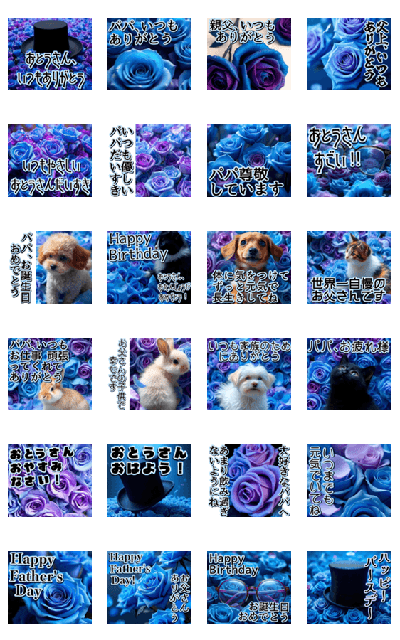 【父の日】飛び出す★青薔薇父の日【6/15】 -LINEスタンプマニア