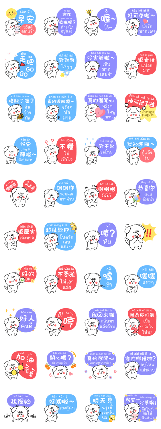 Jai foo, cute , sweet, and ready to chat every day in Thai & Traditional Chinese , Taiwanese Chinese - Thai Stickers