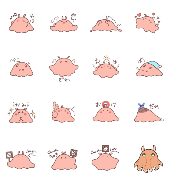 めんだこのようなキャラクターが2文字で気持ちを伝えます。