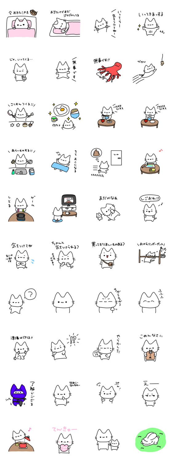 白ネコのあいうえお・・・ってるスタンプ