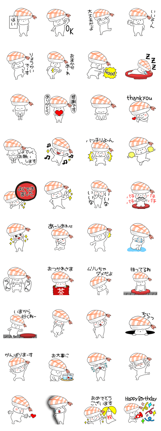 ちゃん文字無しスタンプ入りで毎日使える寿司のエビの可愛いスタンプです