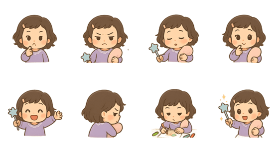 Abigail is a 3-year-old girl showing her soft, cute reactions in daily moments. No text, only pure expressions in kawaii chibi style.
