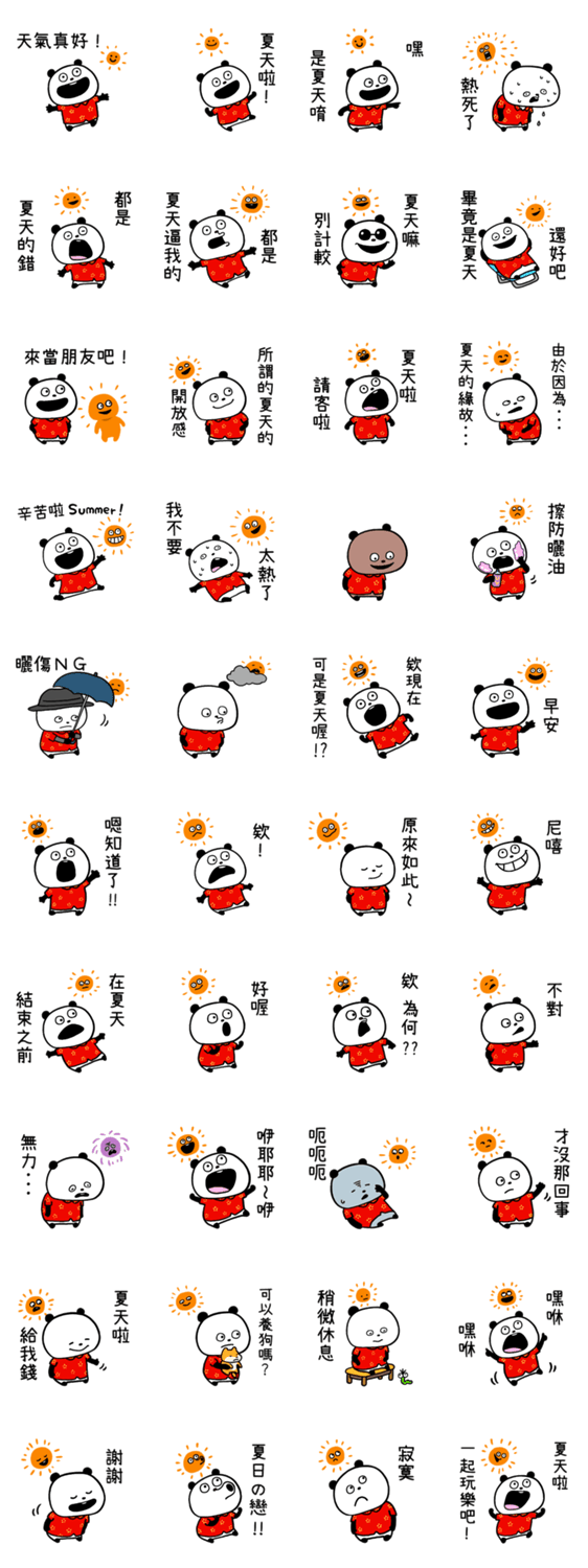 | スタンプ説明 | Meet the panda from team "GOKIGEN PANDA"! It's summer! It's hot! Let's have some fun! Release date in Japan:June 26, 2018 |