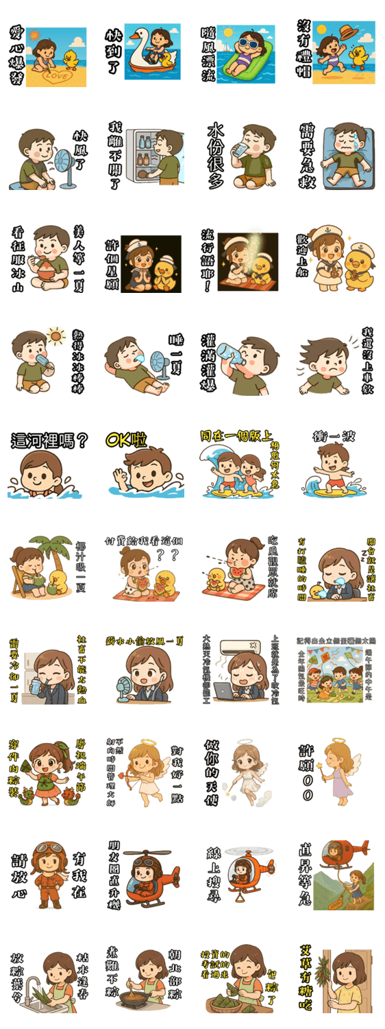 | スタンプ説明 | It is suitable for using the communication/sharings or talk about the weather, summer drinks ,summer sports and the exercises,etc... |