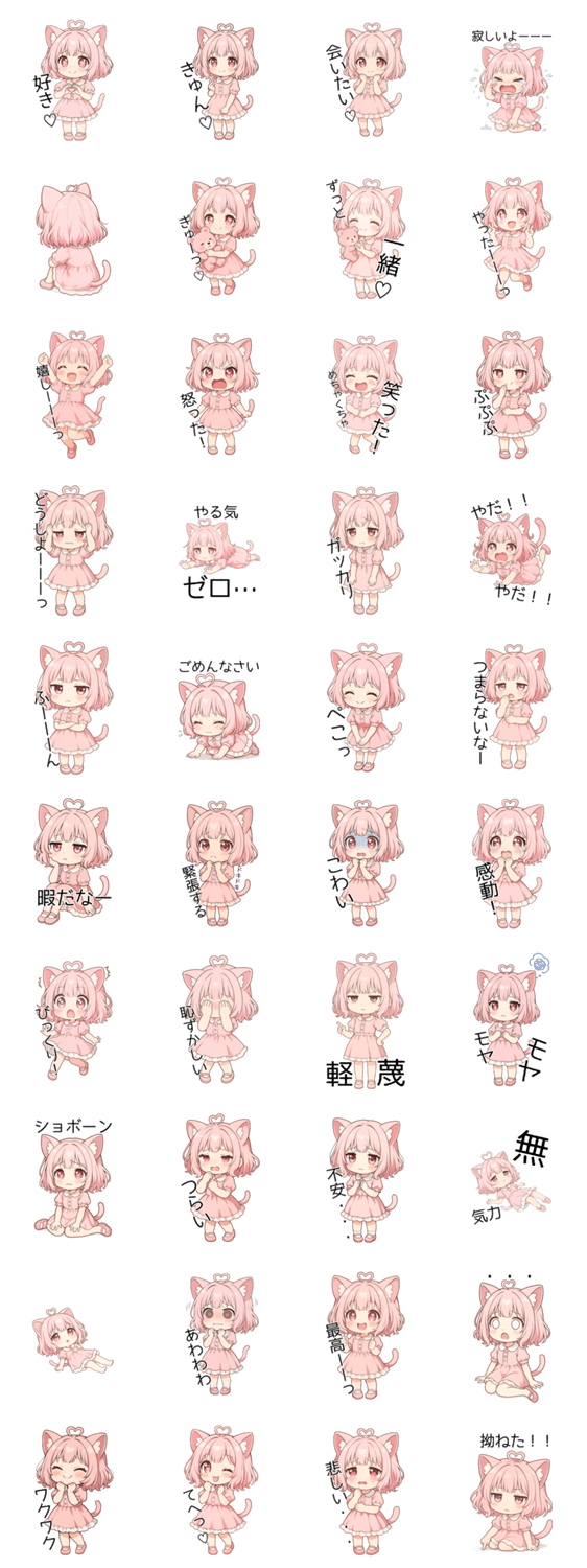 猫耳ワンピースピンクの女の子 -LINEスタンプマニア