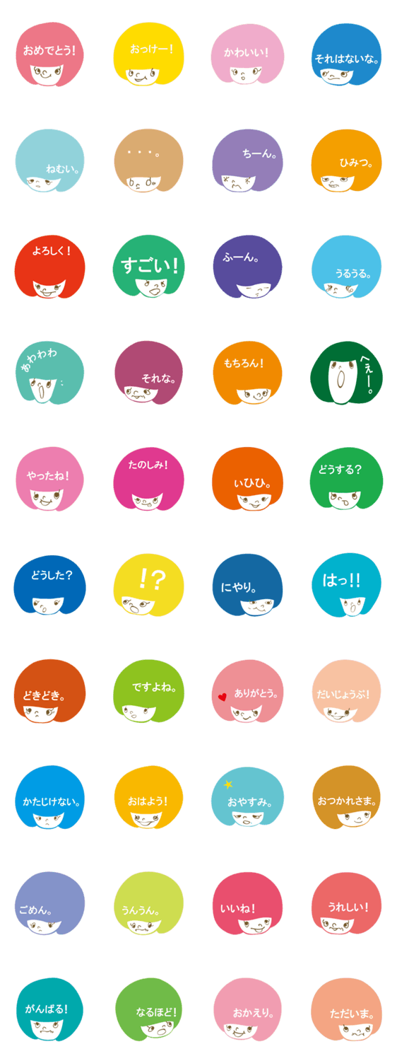 口下手だけど、まるぼんの思いはみんなに見透かされてしまいます。かわいい(ときに生意気な)『まるぼん』の豊かな表情で、家族や友達との日常会話にいろどりを。