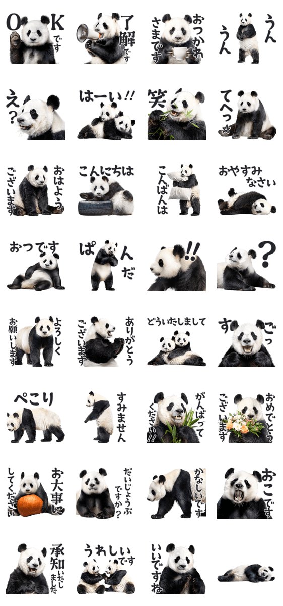 可愛いぱんだの写真スタンプ。会社学校の先輩に毎日挨拶使える定番面白いゆるい業務連絡。プレゼントにおすすめパンダ大熊猫推し動物大人男子女子家族友達上司おばあちゃん