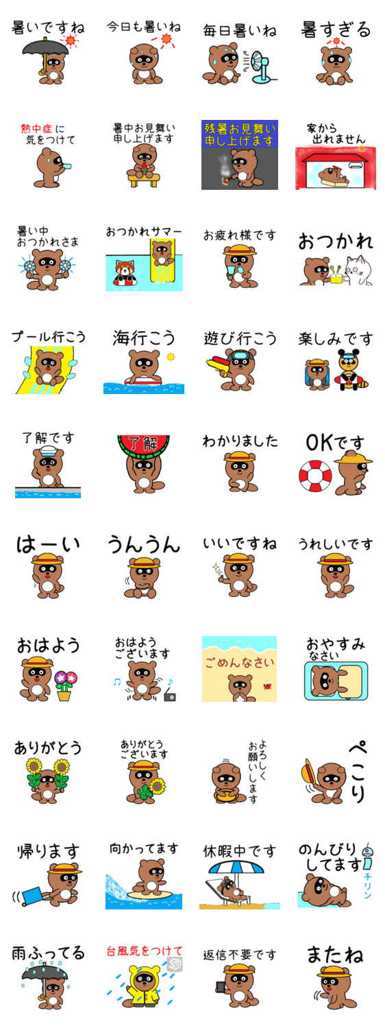 たぬきのスタンプです。夏編