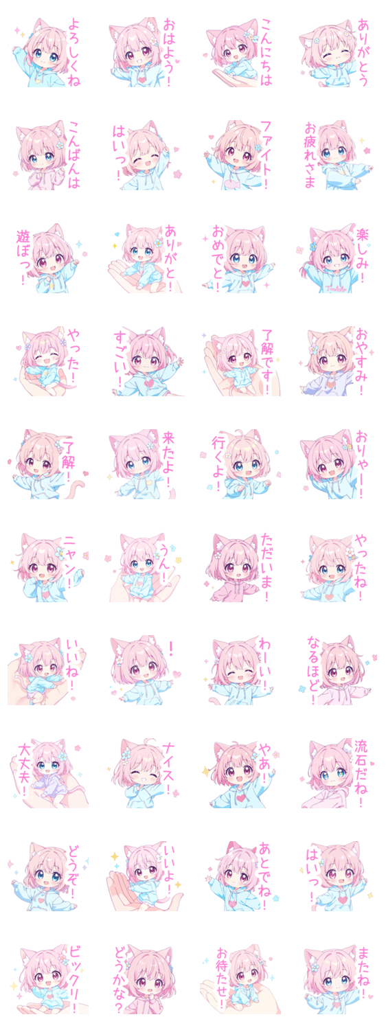 ンク猫耳パーカーの女の子スタンプ