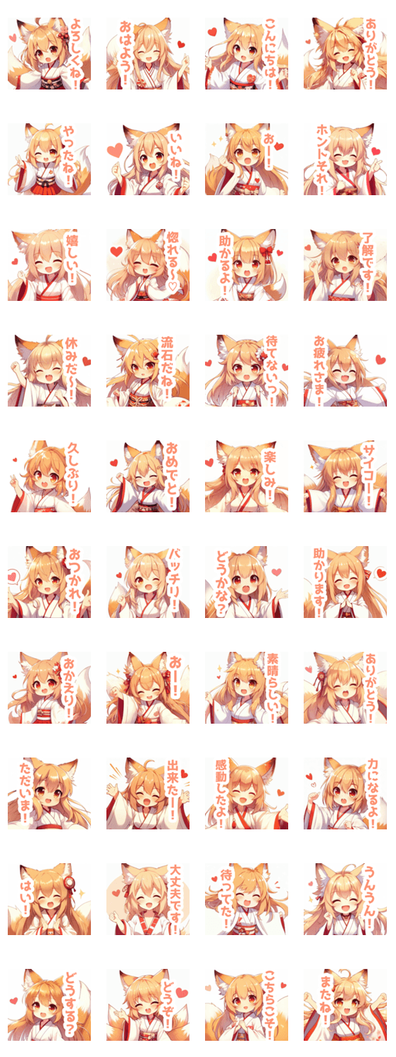 狐耳の巫女服の女の子スタンプ -LINEスタンプマニア