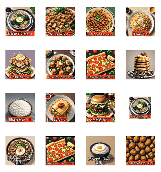 おなかがすいた時、ごはんを食べる時、食後のひとことまで。毎日使えるグルメスタンプです。