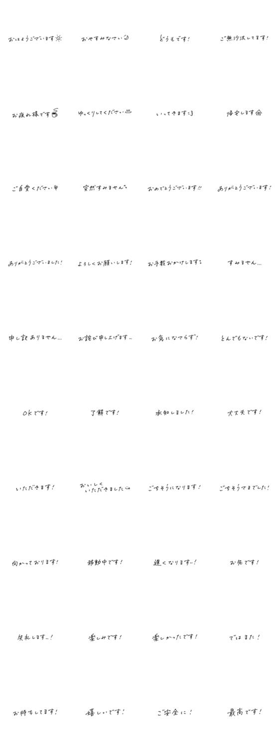 「エモい文字の一言スタンプ」の第4弾です。ちょっと丁寧めの口調。手書き文字でトークラインをエモい雰囲気にできます。