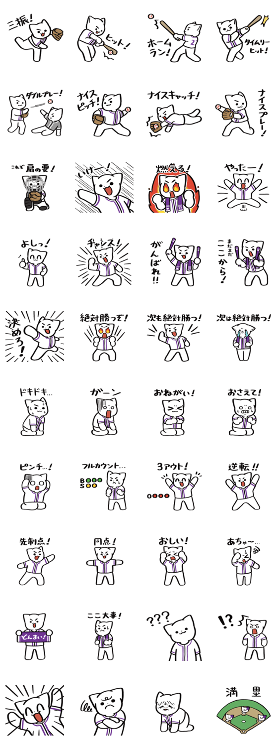 野球ねこ応援団・紫チームVer. その2 -LINEスタンプマニア