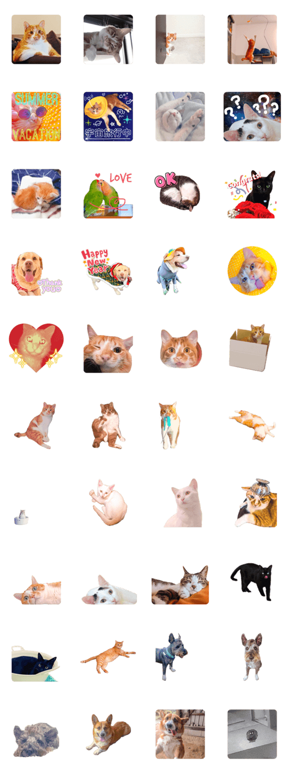 スタンプ説明 ねこマシマシ犬少なめインコを添えて