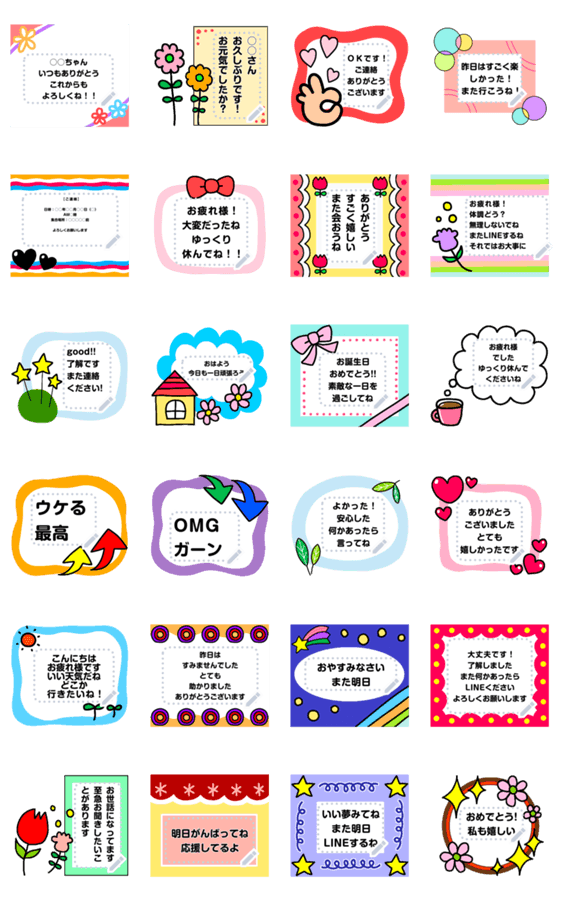 色々なメッセージをお楽しみください! 現在この商品は一部のスマートフォン版LINE 10.3.0以上のトークルームでのみ使用できます。動作環境の最新情報はヘルプをご確認ください。