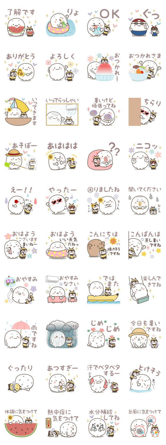 ちびましゅまろとゆるぺんの夏に使えるやさしいカラーのスタンプです♪