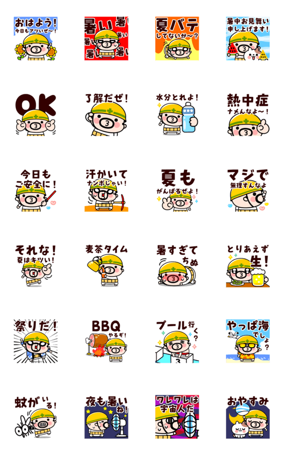 汗だくでも元気!現場のおやじ君が、真夏のあいさつやリアクションを暑苦しくお届け!夏でも現場は止まらない!おやじ君が、あつ〜い日常を笑い飛ばすぞ!