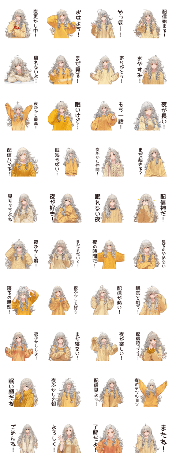 夜更かし女子にピッタリ!深夜配信やライブチャットが楽しくなる可愛いスタンプ♪夜ふかし/配信/ライブ/女性/可愛い/トーク/おしゃべり