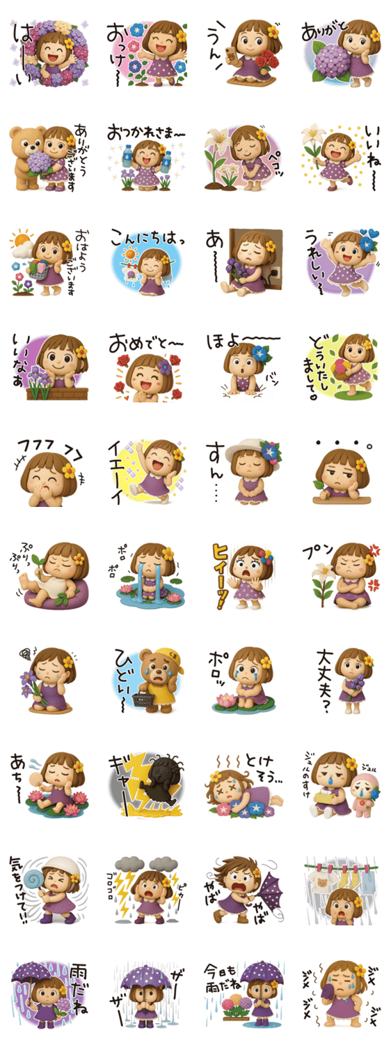 はな子✿3Dちびドールver.(梅雨〜夏) -LINEスタンプマニア