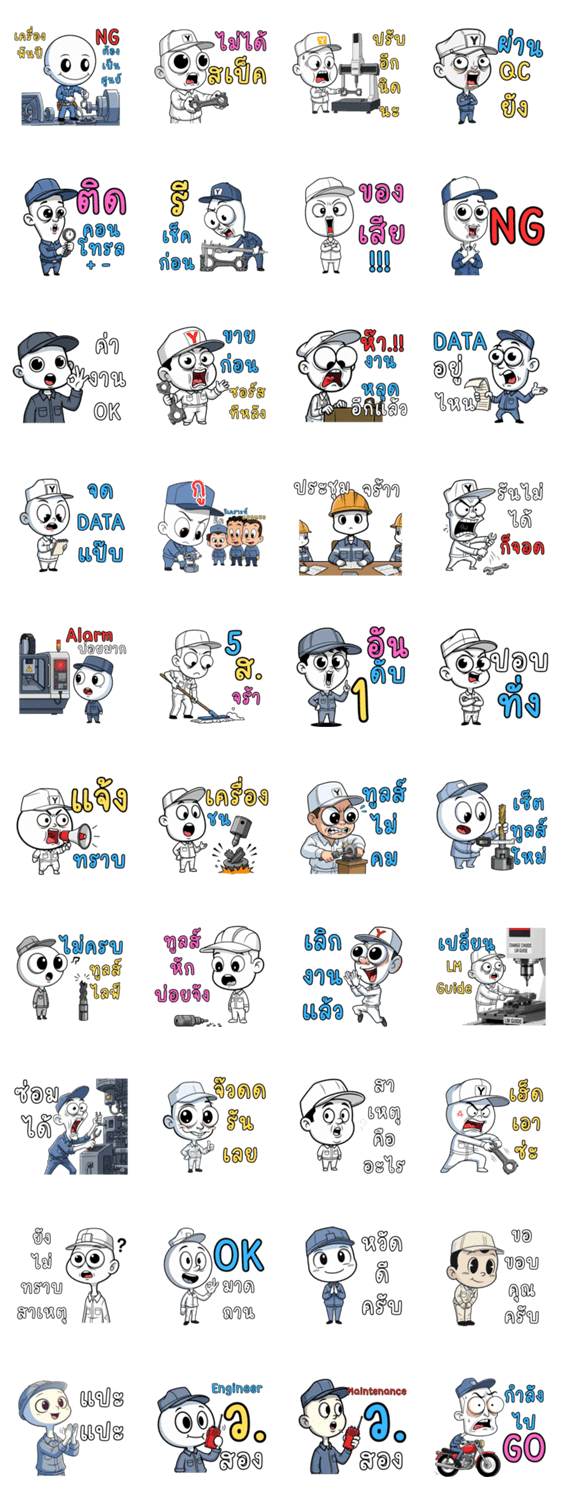 | スタンプ説明 | Hot gossip alert from the factory floor! Introducing the sticker set Factory Talk: Gossip & Giggles |