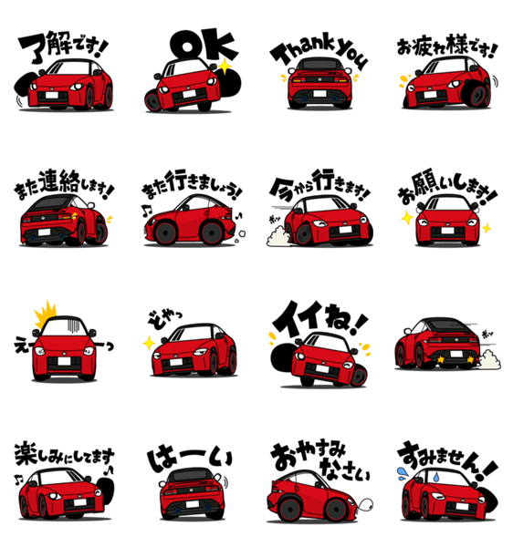 FRらしいスタイリッシュなスポーツカーのスタンプです!友達同士で、チームのグループLINEで、愛車をアピールしちゃおう!