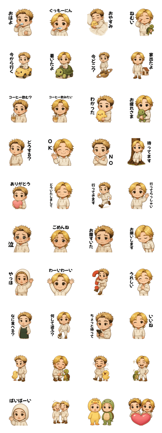 白パーカーを来た金髪男の子2人の日常会話スタンプ