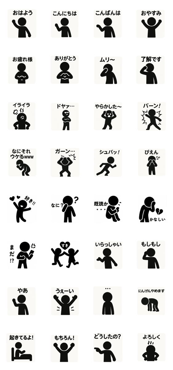 誰もが使いやすい棒人間が日常会話を表現しています!