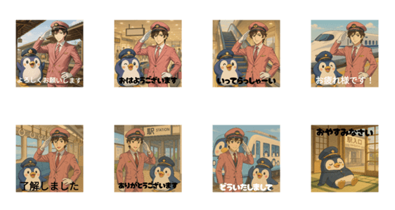ペンギンと鉄道員のコラボ -LINEスタンプマニア