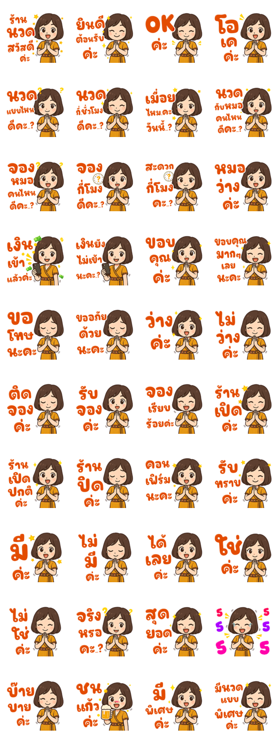 | スタンプ説明 | Used in massage shops & spas. Staff wear yellow uniforms. |